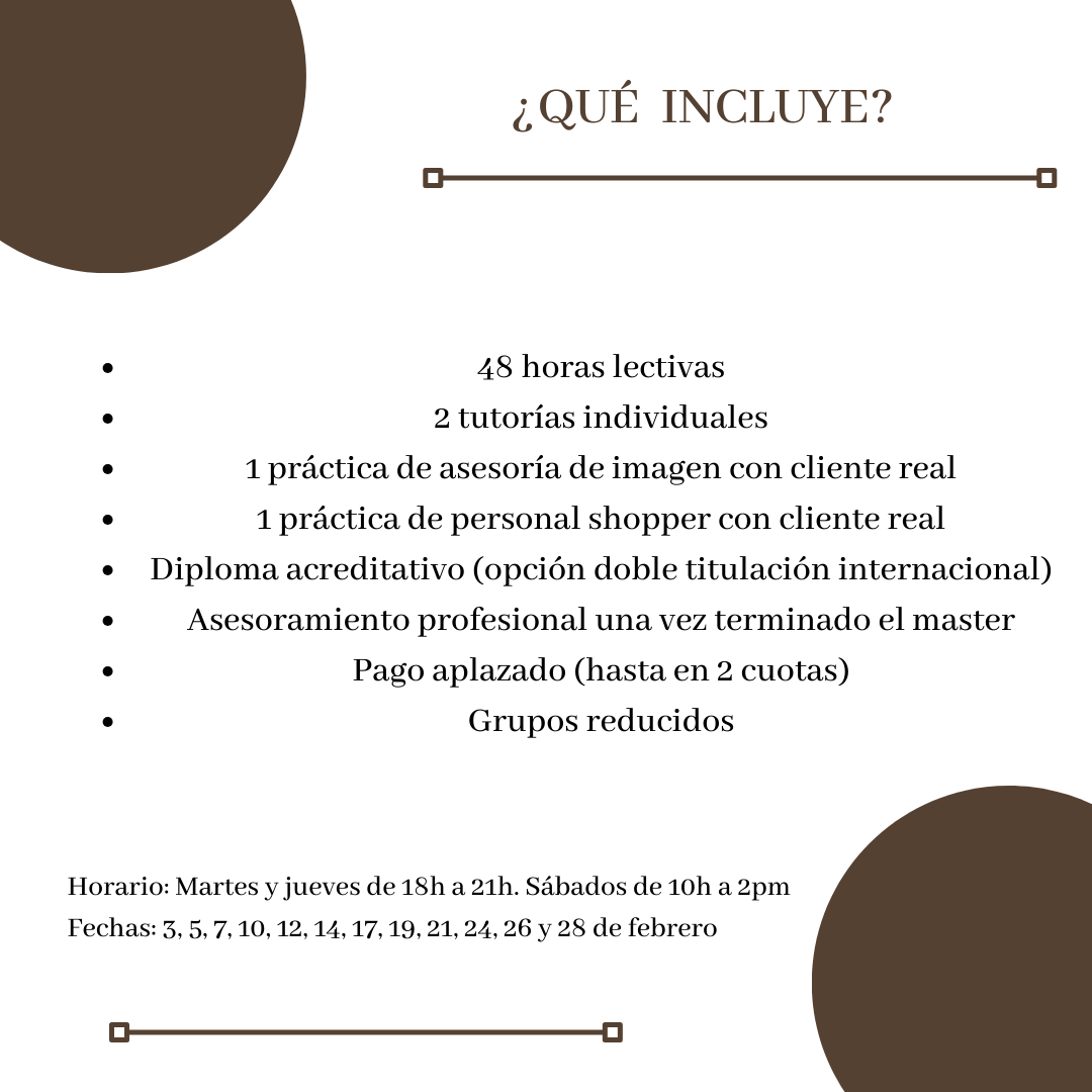Al finalizar el programa, el alumno recibirá el título oficial que lo acredita como Asesor/a de Imagen y Personal Shopper.